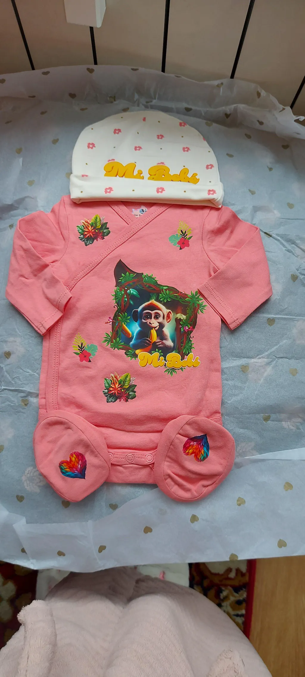💎 Ensemble assorti comprenant un body, un bonnet et des chaussettes.